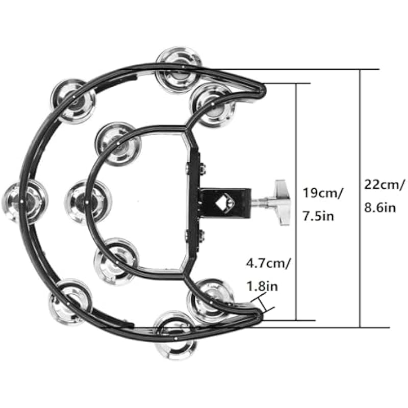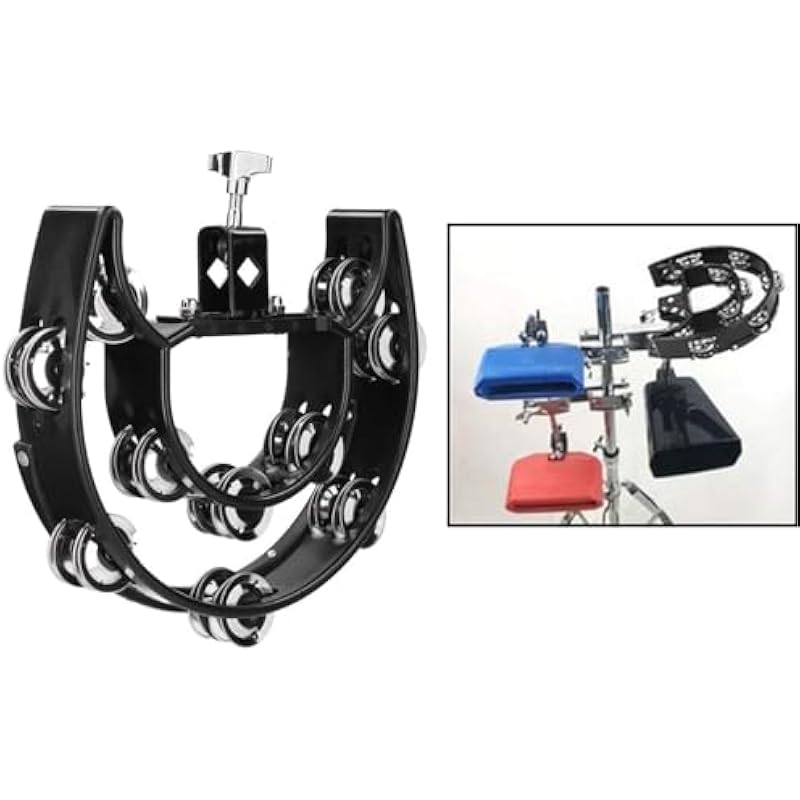 - Percussion Tambourine with Mount Kit: Contains 1pcs bass drum clamp, 1pcs L-rod, and 1pcs tambourine. The tambourine comes with mounting bolts that can be mounted on a stand rod to expand your drum set.
