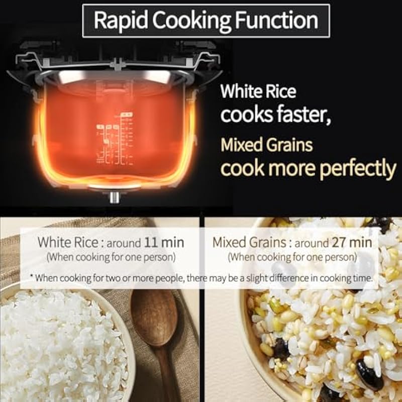 - INDUCTION HEATING: In contrast to conventional bottom-plate heating, induction technology envelops the inner pot entirely, resulting in a faster and more efficient cooking process, ultimately yielding more delectable outcomes.To maximize the release of starch for a delicious, chewy texture, this product cooks rice at a higher temperature. However, excessive starch release can cause the rice to deteriorate if kept warm for more than 12 hours. For long-term storage, we suggest using the refrigeration cook setting.