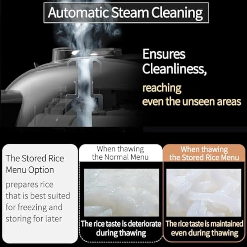 - Menu Options: Enjoy 20 Menu Options including 5 Rice Menus (Sticky Rice, Gaba Rice, Calrose Rice, Mixed Grains, Jasmine Rice) and 15 Cooking Menus (Congee, Chicken Soup, Mac and Cheese, Pulled Pork, Grits, Frittata, Gumbo, Jambalaya, Cioppino, Chili con carne, Oats, Quinoa, Chickpeas, Kamut, Lentil Bean)
