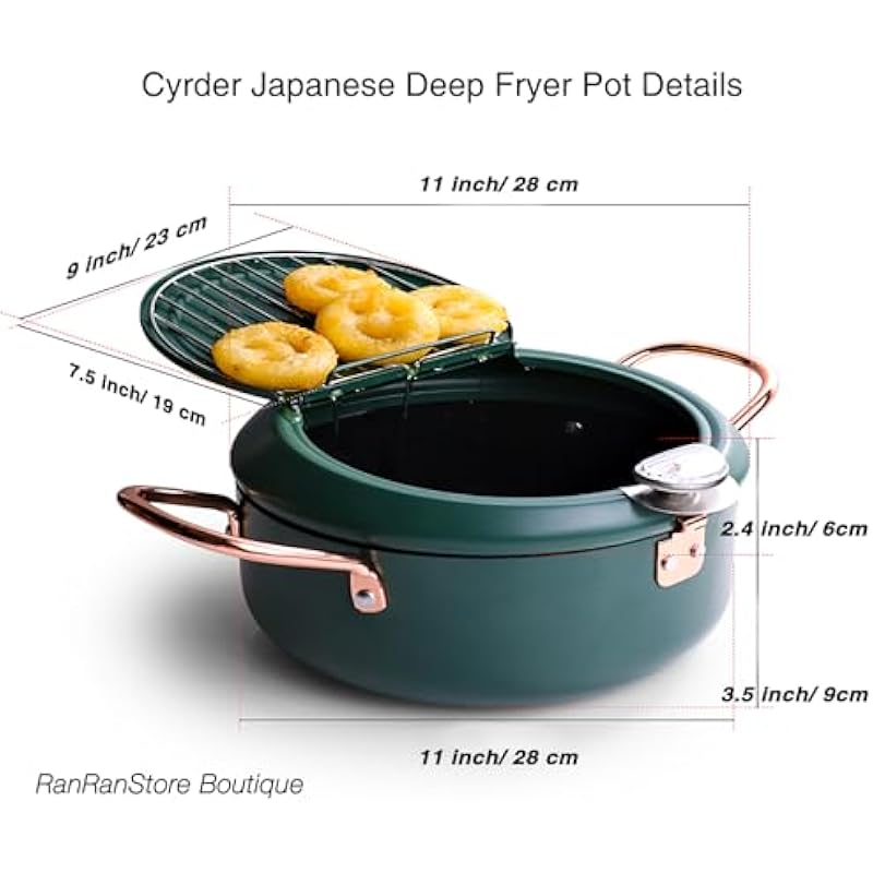 - Precise Temperature Control with Built-In Thermometer — Achieve perfect results every time with the integrated Fahrenheit thermometer. Take full command of your frying: maintain ideal temperatures at 300-320°F for vegetables, 320-340°F for meats and poultry, and 350-380°F for seafood. Create crispy, golden, professional-quality tempura and other favorites with ease.