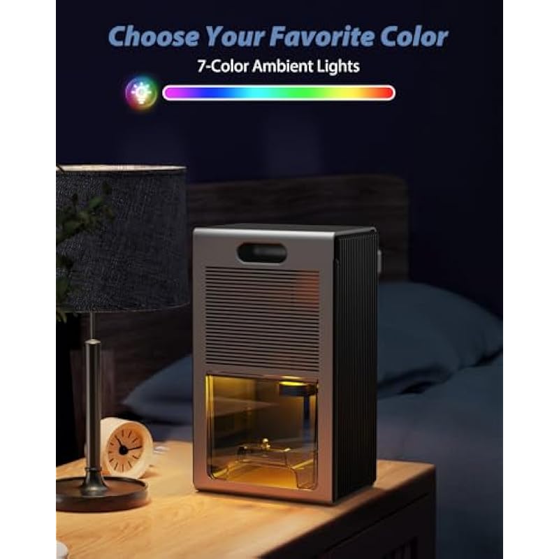 - 【Soothing Ambient Light Display】Add atmosphere to any room with the built-in color-shifting ambient lights. The lights cycle through a spectrum of colors automatically, or you can lock your favorite hue by pressing the light button when it appears. A perfect touch for a cozy and romantic bedroom vibe.