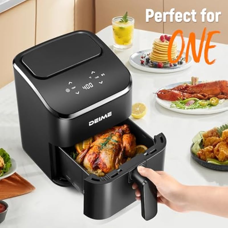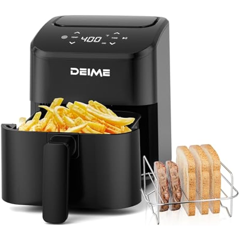 DEIME Air Fryer 3 Qt, Small Airfryer Digital Space Saving Compact, Bake, Reheat, Roasts for Quick Easy Meals, Mini Compact & Quiet, Nonstick & Dishwasher Safe Basket Toast Rack