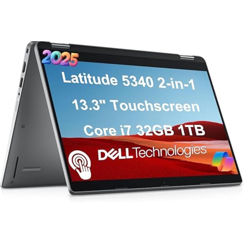 Dell Latitude 5340 2-in-1 Business Laptop (13.3″ FHD Touchscreen, Intel Core i7-1365U vPro, 32GB DDR5 RAM, 1TB SSD) Backlit, 1080p Webcam, 2 x Thunderbolt 4, Latitude 5000, Win 11 Pro w/ Copilot, Gray