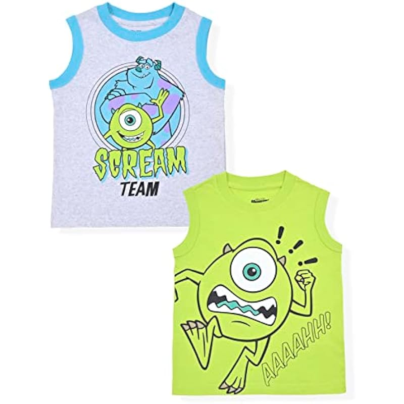 Disney Monsters Inc Mike Wazowski and James Sullivan Boys’ 2 Pack Tank Tops for Toddler – Grey/Green