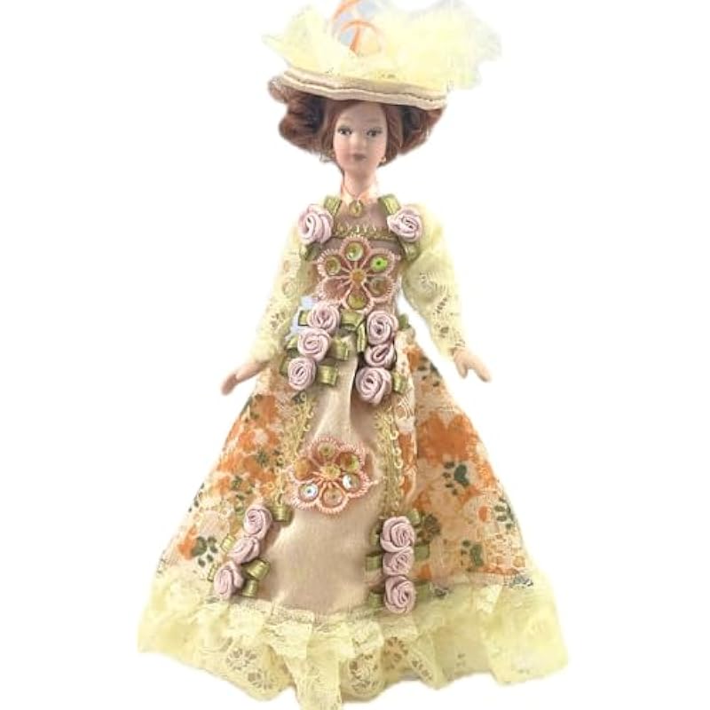 - 1:12 Scale Porcelain Doll, Fabric Clothing, Height 150 mm, 6 Inches