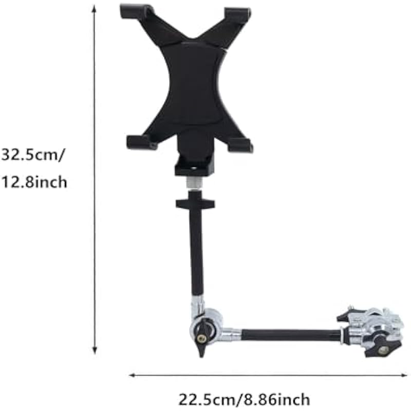 - Adjustable design: With an adjustable design, the tablet mount holder can be adjusted to the desired length, and the drum clamp can be adjusted to the direction, suitable for 3/8” to 5/8” mounting rods.