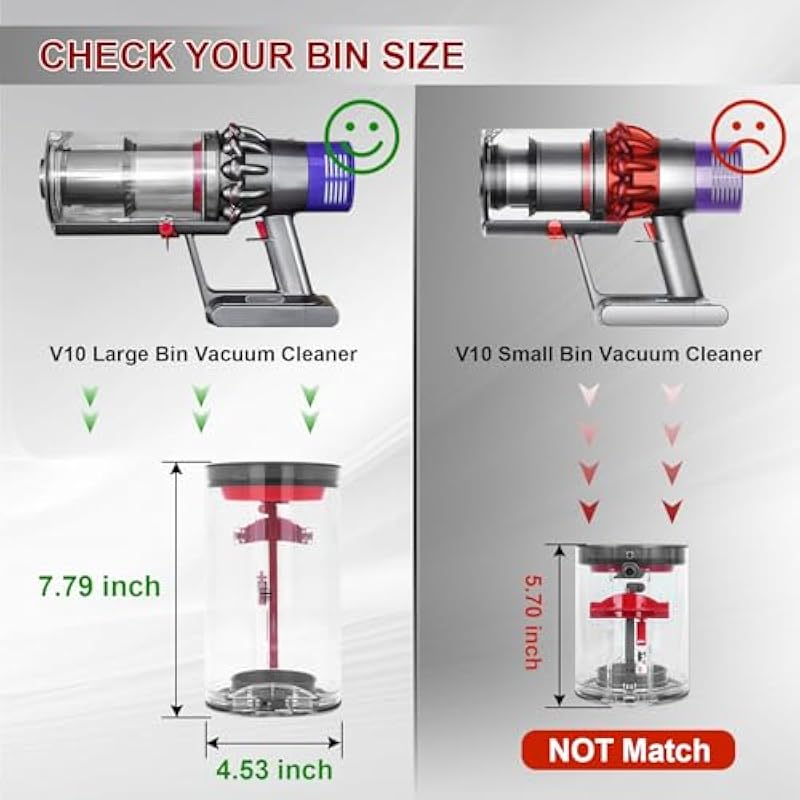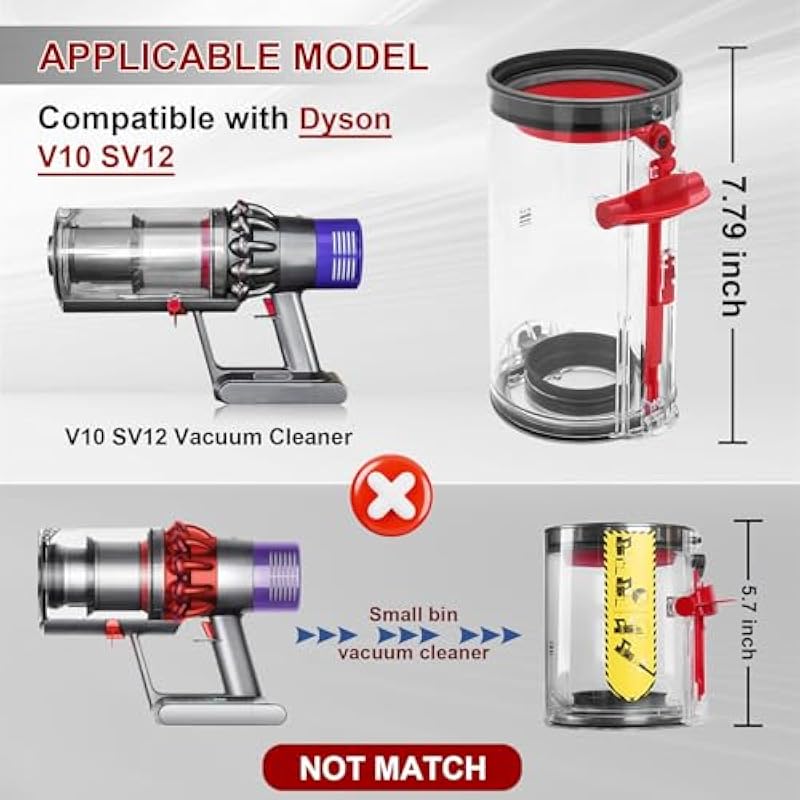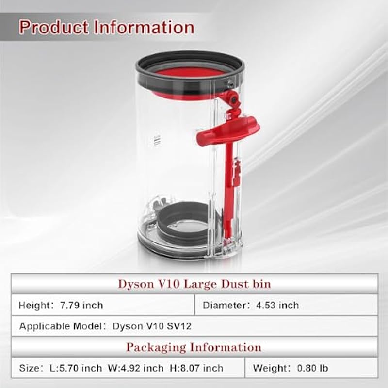 Dust Bin Replacement for Dyson V10 SV12 Vacuum Cleaner Canister Bin Replacement Parts for Large Bin Part No. 969509-01