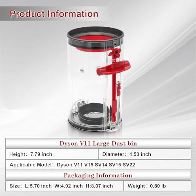 Dust Bin Replacement for Dyson V11 V15 SV14 SV15 SV22 Vacuum Cleaner Canister Bin Replacement Parts for Large Bin Part no. 970050-01 and Part no. 965443-01