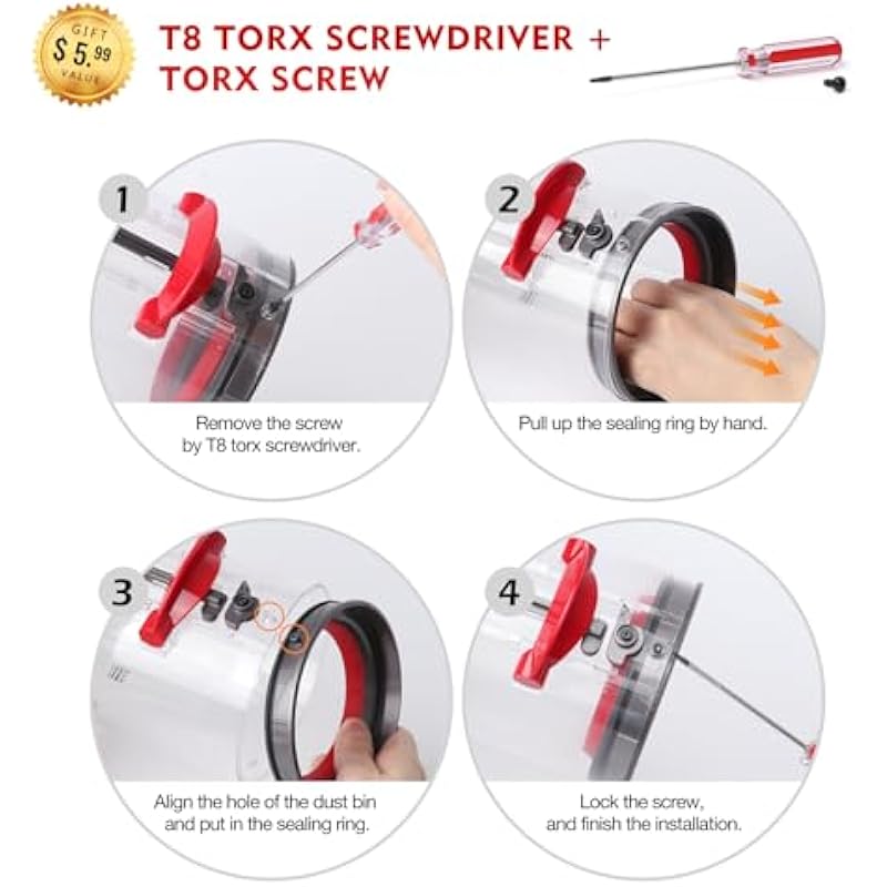 - Compatible Models: This is the dust bin sealing ring assembly compatible with Dyson V11 V15 SV14 SV15 SV22 vacuum cleaner, with screw and T8 screwdriver. Compatible with Dyson all V11 series vacuum cleaner and V15 Detect series vacuum cleaner