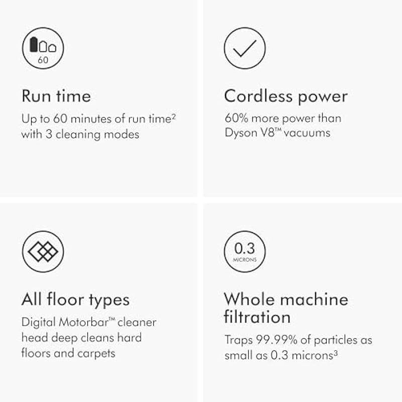 - Intelligently optimizes suction and run time across all floor types. Dyson DLS technology automatically senses and adapts to changes in floor type to extend run time. The right balance of power and run time when you need it.