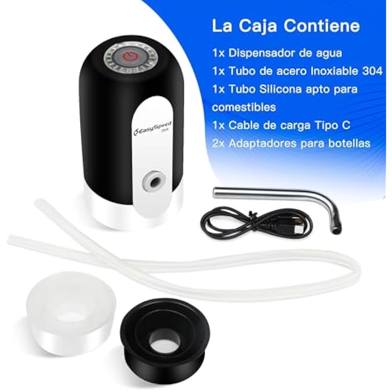 - USB-C RECHARGEABLE: EASYSPEED portable water dispenser is newly upgraded internal chip, built-in high-capacity 1200mAh rechargeable battery, The portable water pump easily rechargeable with the included USB cable, the charging port is a universal Type-C interface very practical, 30-40 days of use on a full charge or approximately 4-5 5-gallon bottles of water, no need to recharge every day to use it easily.