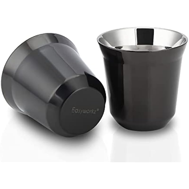 Easyworkz Diego Stovetop Espresso Maker, Bundled With Stainless Steel Espresso Cup 2pcs Set Double Wall Insulated Metal Demitasse Cups