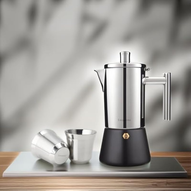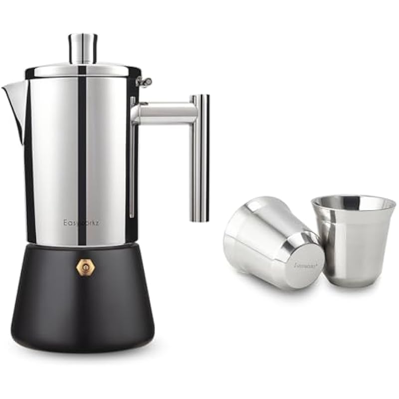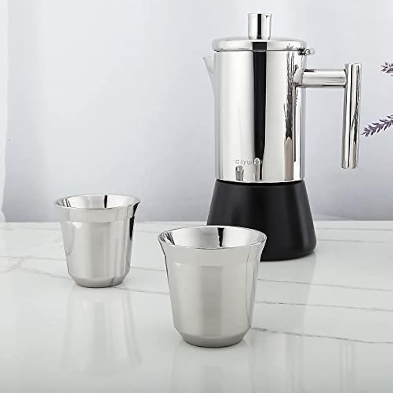 Easyworkz Diego Stovetop Espresso Maker, Bundled With Stainless Steel Espresso Cup 2pcs Set Double Wall Insulated Metal Demitasse Cups