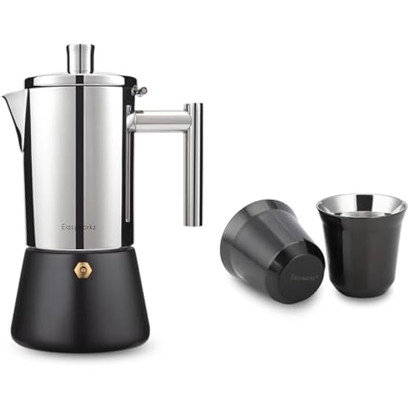 Easyworkz Diego Stovetop Espresso Maker, Bundled With Stainless Steel Espresso Cup 2pcs Set Double Wall Insulated Metal Demitasse Cups