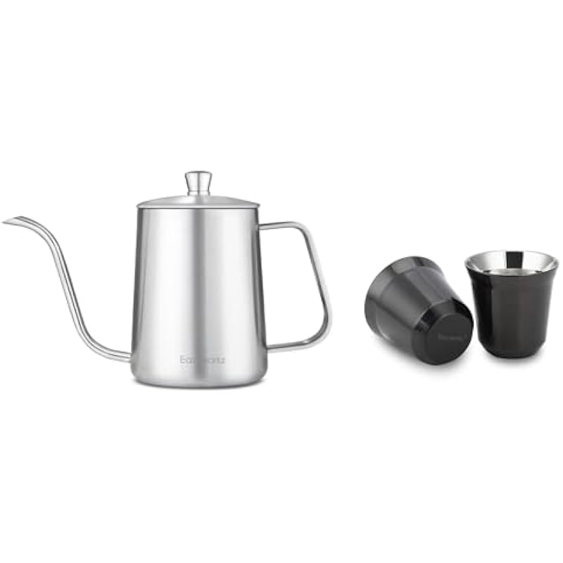 Easyworkz Gage Gooseneck Pour Over Coffee Kettle 20 oz, Silver, Bundled with