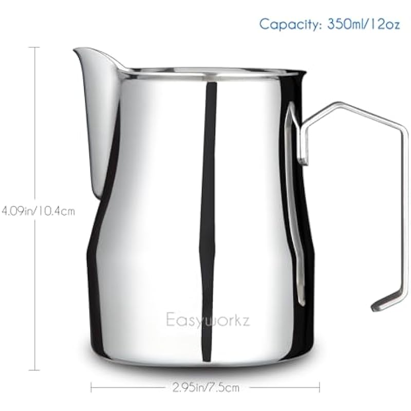 Easyworkz Pedro Stovetop Espresso Maker 4Cup 200ml, Bundled Espresso Steaming Pitcher Stainless Steel 12 oz Coffee Frothing Picther Milk Jug Cappuccino Latte Art Cup