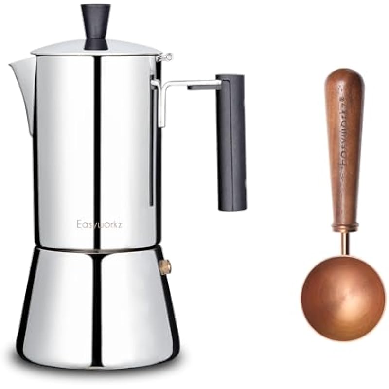 Easyworkz Pedro Stovetop Espresso Maker 4Cup 200ml, Bundled Retro Stainless Steel Coffee Spoon with Black Walnut Handle,10g – Measuring Spoon (Rose Gold)