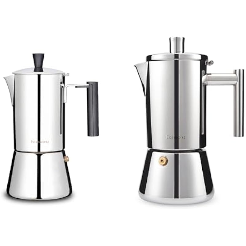 Easyworkz Pedro Stovetop Espresso Maker 6Cup 300ml, Bundled Diego Stovetop Espresso Maker Stainless Steel Italian Coffee Machine Maker 12Cup 17.5 oz