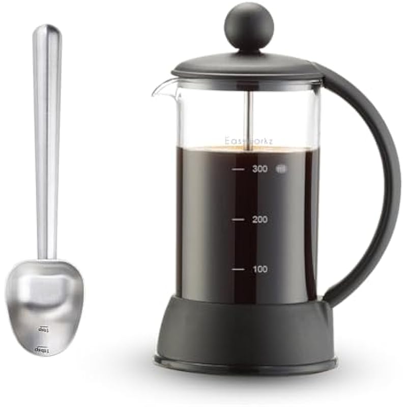 Easyworkz Retro Stainless Steel Coffee Spoon With Black Walnut Handle,10g – Measuring Spoon, Bundled with Easyworkz Eclipse French Press 12 oz Coffee Tea Maker with Borosilicate Glass