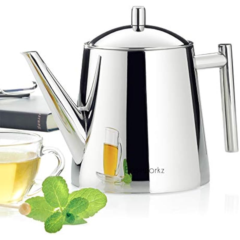 - Double-Wall Insulation: This 34 oz teapot features double-walled stainless steel construction to keep your tea hot for hours.