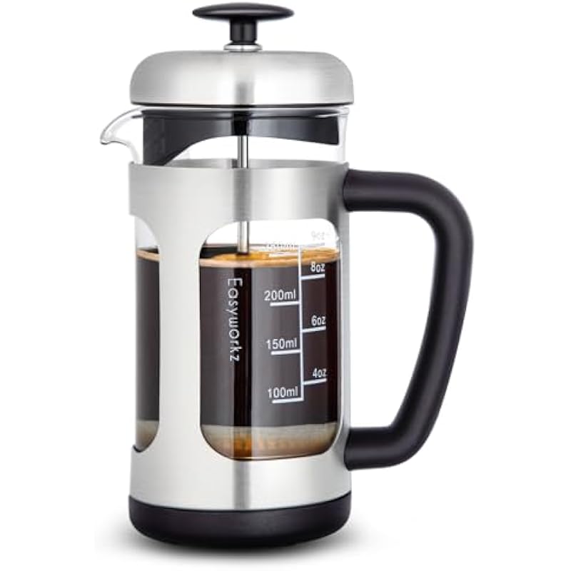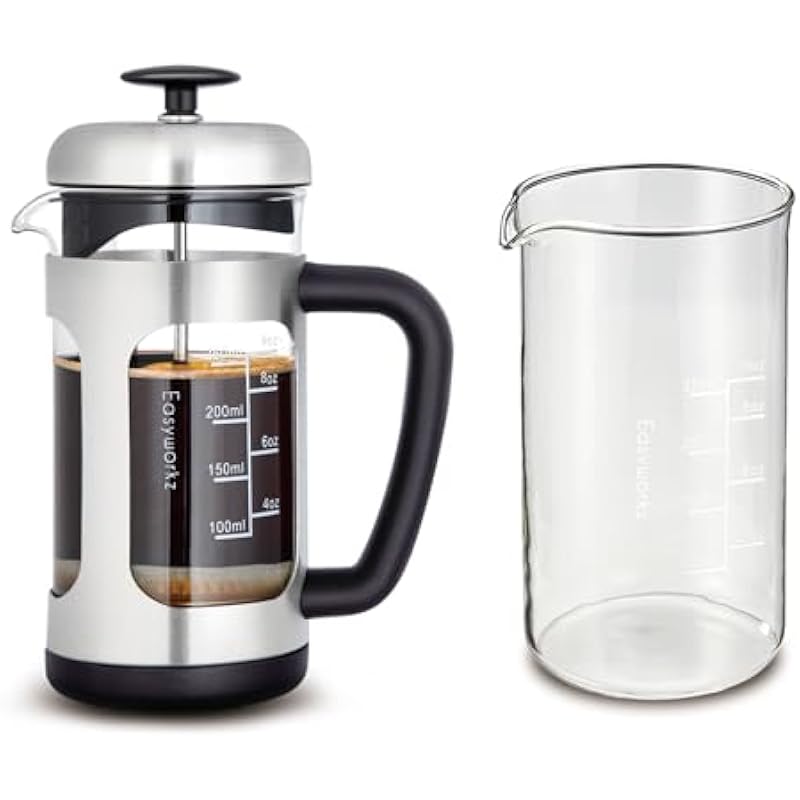 Easyworkz Stainless Steel French Press 12 oz Coffee Tea Maker with Soft Grip Handle Bundled with Glass Replacement