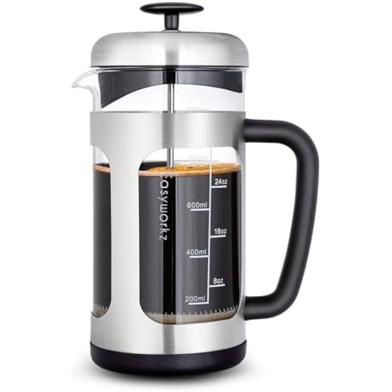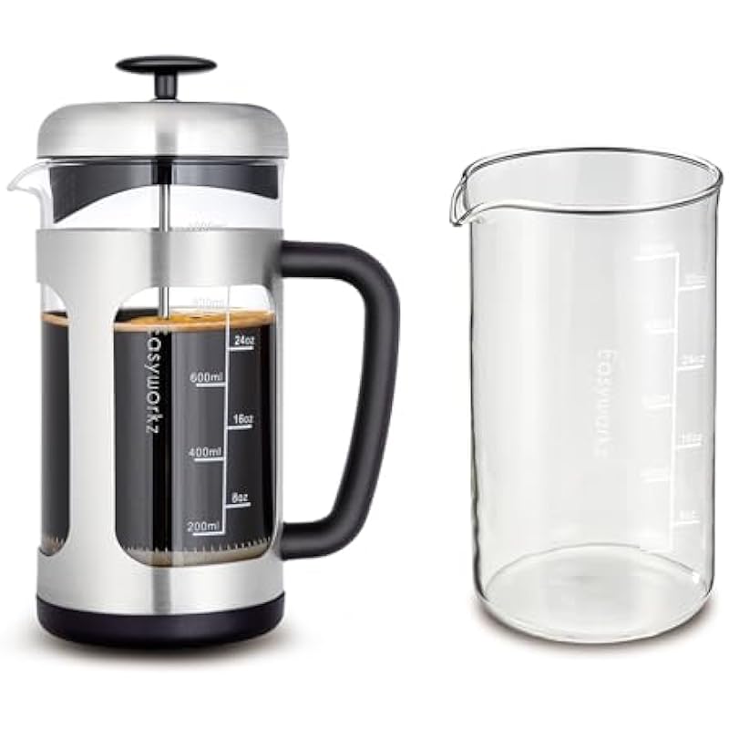 Easyworkz Stainless Steel French Press 34 oz Coffee Tea Maker with Soft Grip Handle Bundled with Glass Replacement