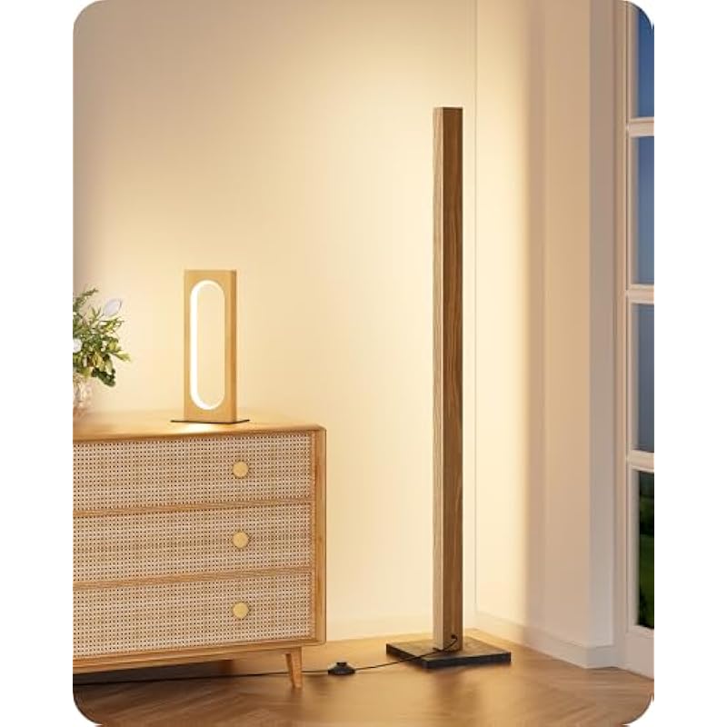 EDISHINE Wood LED Corner Floor Lamp & LED Table Lamp