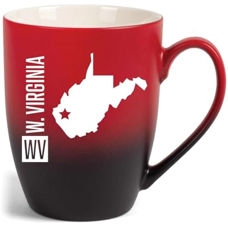 - EYE-CATCHING DESIGN: With a vibrant design, this laser engraved mug features the silhouette of West Virginia’s state border with a capital star marking Charleston on a red and black ombre background. Add memories from your travels to your drinkware collection with ease.