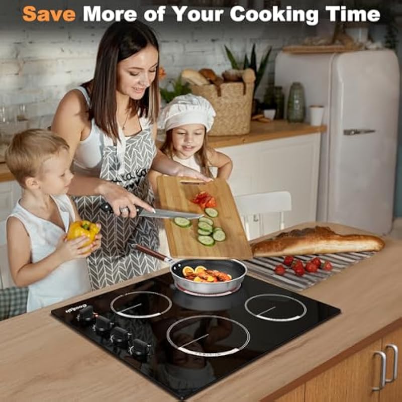 - 【Suitable for All Types of Cookers】Cooksir electric stove top can be used with any type of cookware in your home, such as aluminium pans, copper pans, cast iron frying pans and non-magnetic stainless steel pans. 4 burner ceramic hob can heats cookware efficiently with minimal heat loss. Simply wipe with a clean cloth when cool.