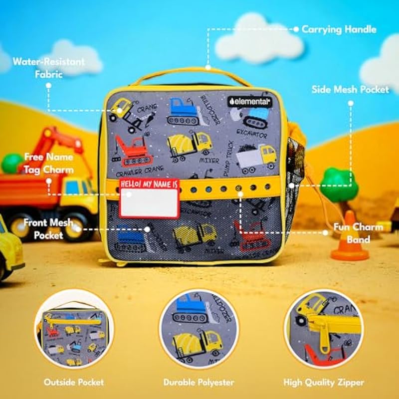 - 𝗦𝗽𝗮𝗰𝗶𝗼𝘂𝘀 & 𝗦𝗺𝗮𝗿𝘁 𝗦𝘁𝗼𝗿𝗮𝗴𝗲 𝗟𝗮𝘆𝗼𝘂𝘁: Elemental kids’ lunch bag features a spacious main compartment and an outer mesh pocket with a charm band perfect for keeping snacks, meals, and small essentials organized.