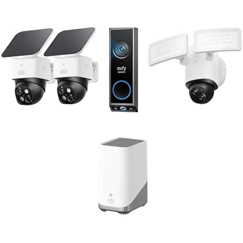 eufy Security SoloCam S340, Solar Security Cameras Wireless Outdoor, HomeBase S380, Video Doorbell E340 (Battery Powered), Camera Floodlight Camera E340