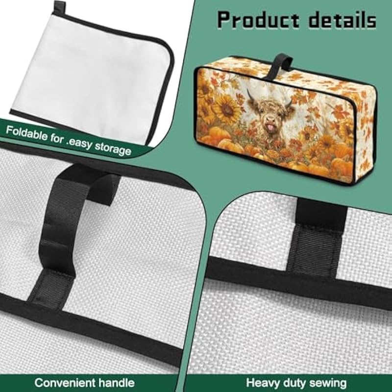 Fall Sunflower Cow Toaster Dust Cover, Long Washable Autumn Thanksgiving Toaster Cover Bread Maker Dust Fingerprint Protection, Kitchen Appliance Protector