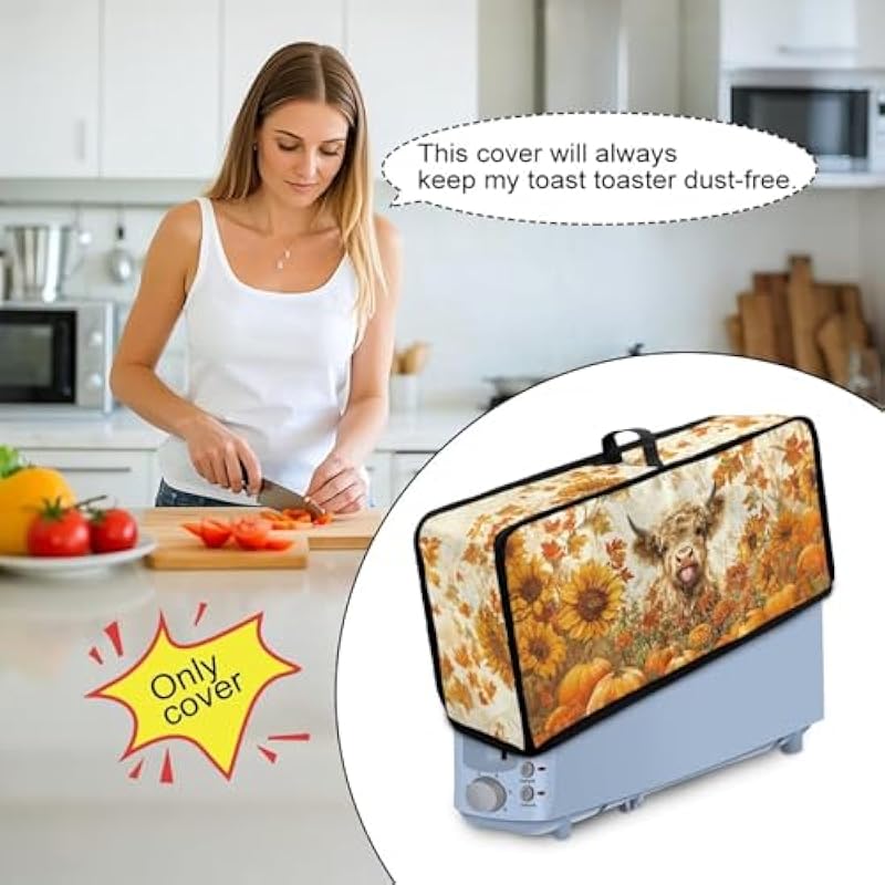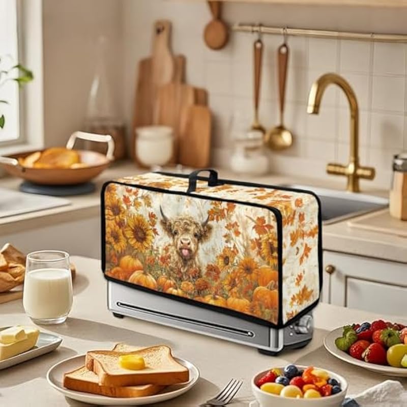 Sunflower Leaf Cow Kitchen Machine Covers, Autumn Fall Dustproof Toaster Cover Fits Most Long Toasters, Small Kitchen Appliance, Bread Maker Protector