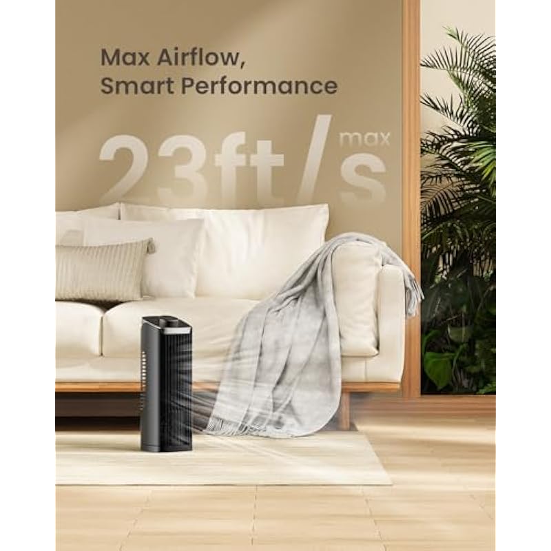 - 【Powerful Cooling in a Compact Design】Stay cool and comfortable with this high-performance tower fan, delivering strong airflow up to 23ft/s. The oscillating tower fan evenly distributes cool air across the room, making it perfect for bedrooms, offices, and dorms. This small tower fan is space-saving while providing powerful cooling all day long.