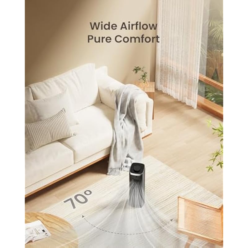 - 【Ultra-Quiet for Restful Sleep & Focus】Enjoy a cool breeze without the noise. Operating at just 29dB, this fan for bedroom is ideal for sleeping, working, or relaxing. Whether you need a desk tower fan for your office or a tower fan for bedroom to keep you cool at night, its whisper-quiet operation ensures minimal disruption.