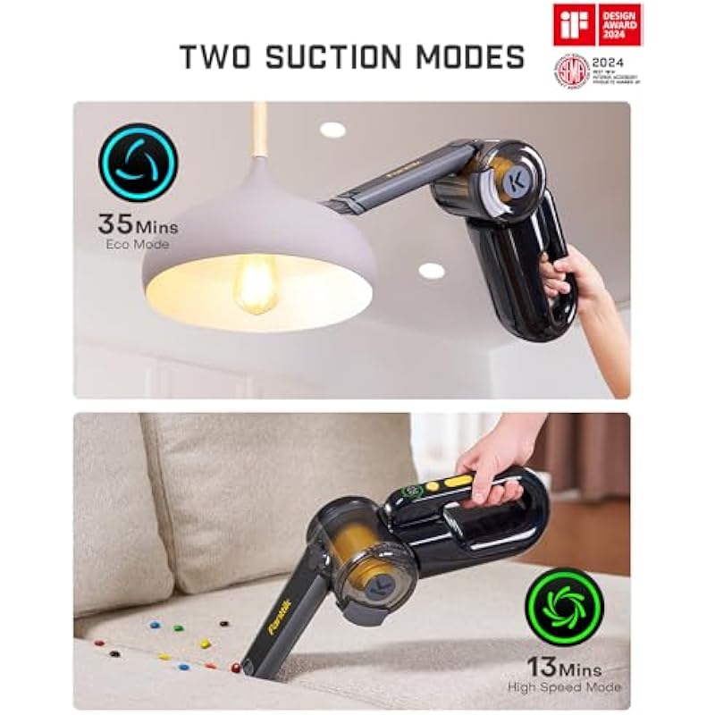 - 7-Settings Pivot System: Effortlessly clean narrow car gaps and hard-to-reach places like shelf tops or under couches. Fanttik’s 180° rotating head locks into 7 angles, featuring an extendable crevice nozzle and LED light for complete debris removal