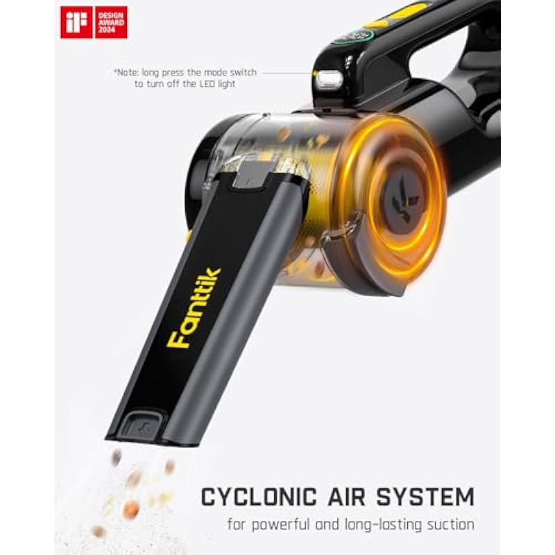 - Multi-Accessory Car Detailing Kit: Tackle some surfaces with Fanttik’s hard bristle brush for tough, adhesive debris and a soft bristle brush for delicate displays. Perfect for cars, homes, and more, this hand vac delivers professional-level cleaning