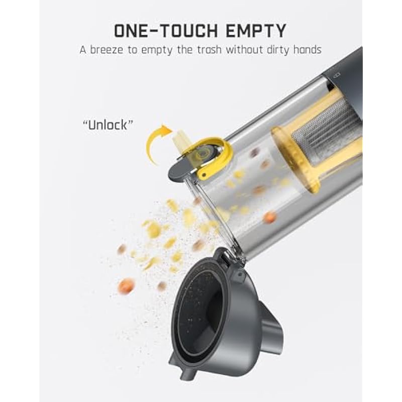 - One-Click to Dust & Easy to Clean: Simply unlock the latch that prevents accidental spills, press the button and pour, without dirtying your hands. The transparent design provides a clear view of the dust collection process, prompting timely disposal