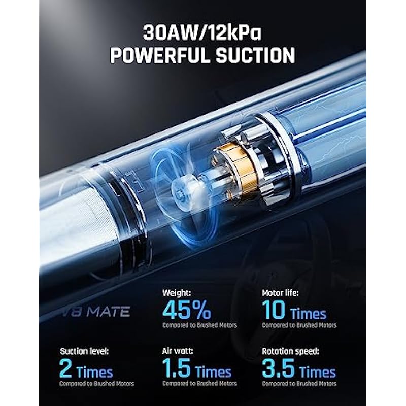 - Ultra Light Wireless – Only 1.2lbs (540g), a bottle of water weighs,with the wireless design allows you to easily handle sand, dust and debris in every corner of the car with one hand. Compact and portable, the attached storage bag is convenient for car storage