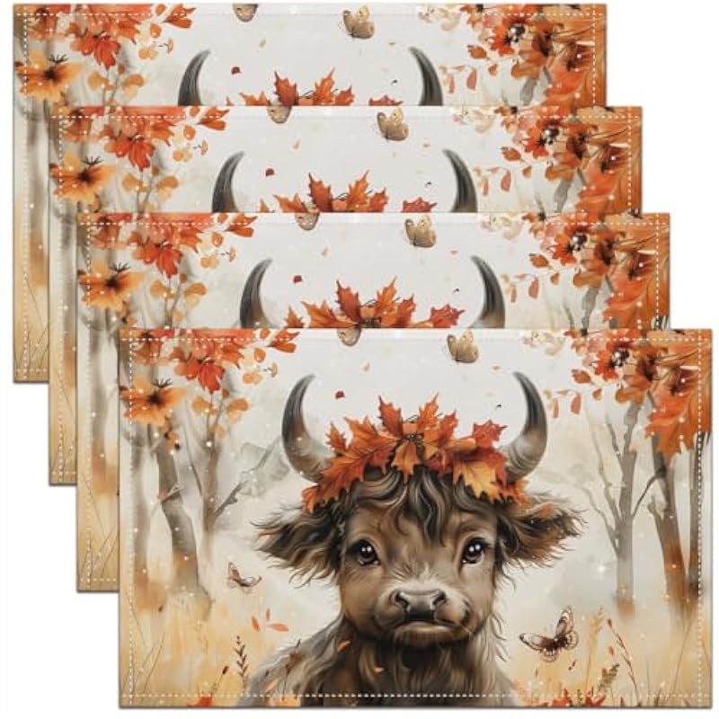 Be the first to review “Feelyou Highland Cow Placemats Set of 4 for Kids 18″x12″ Maple Leaves Placemat for Kitchen Dining Table Decor Indoor Outdoor Butterfly Table Place Mats Beige” Cancel reply
