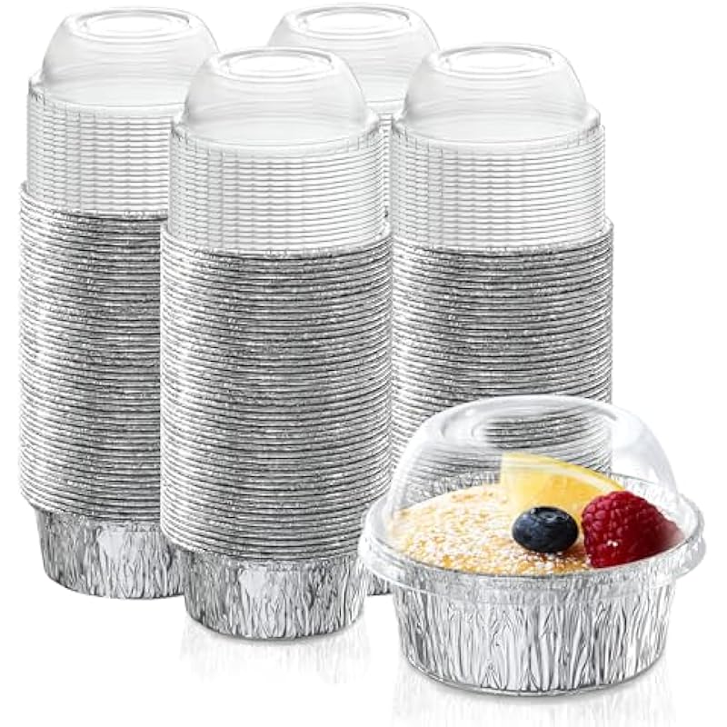 - Affordable Packaging: The package includes 200 pack 4 oz (3.3 inch) disposable small foil ramekins and 200 pack clear lids. Aluminum cupcake liners are stackable for easy storage and kitchen organization. They are a cost-effective option for bakeries, restaurants, cafes, food services, weddings, parties, particularly for catering events or take-out orders