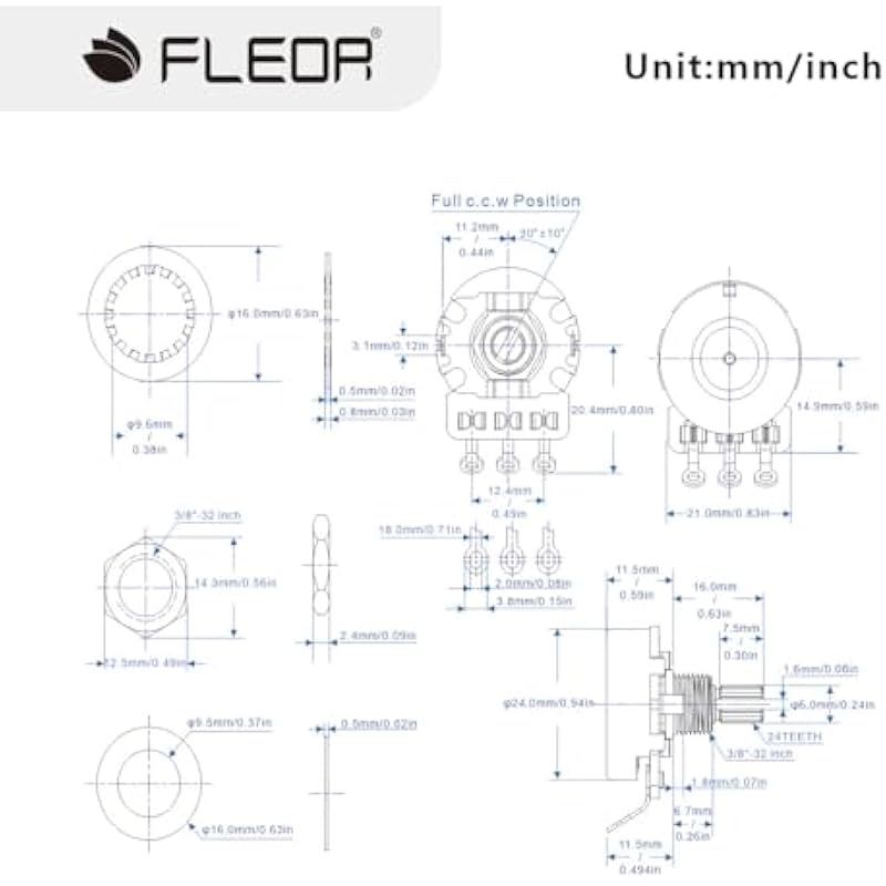 - Short shaft (15.5mm) pot,24-Spline Split knurled shaft diameter 1/4″ (6mm), thread shaft diameter 3/8″ (9.5mm)