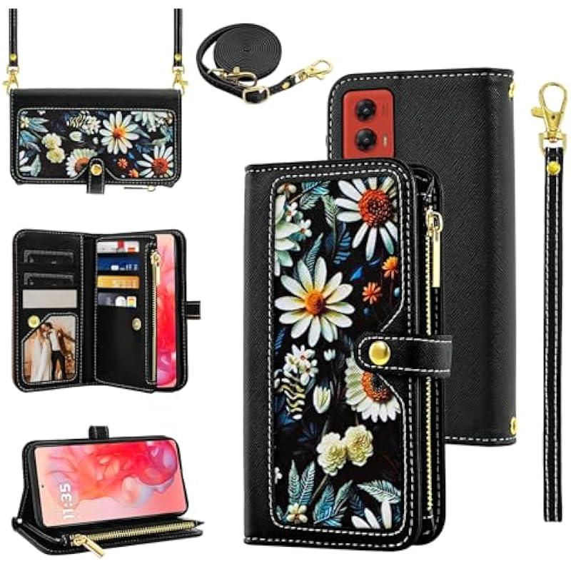 Be the first to review “Floral Wallet Case for Motorola Moto G Stylus 5G 2024 with Wrist Strap Shoulder Strap Flip Zipper Purse, Luxury PU Leather Credit ID Card Holder Stand Accessories Phone Cover for G5 Women Black” Cancel reply