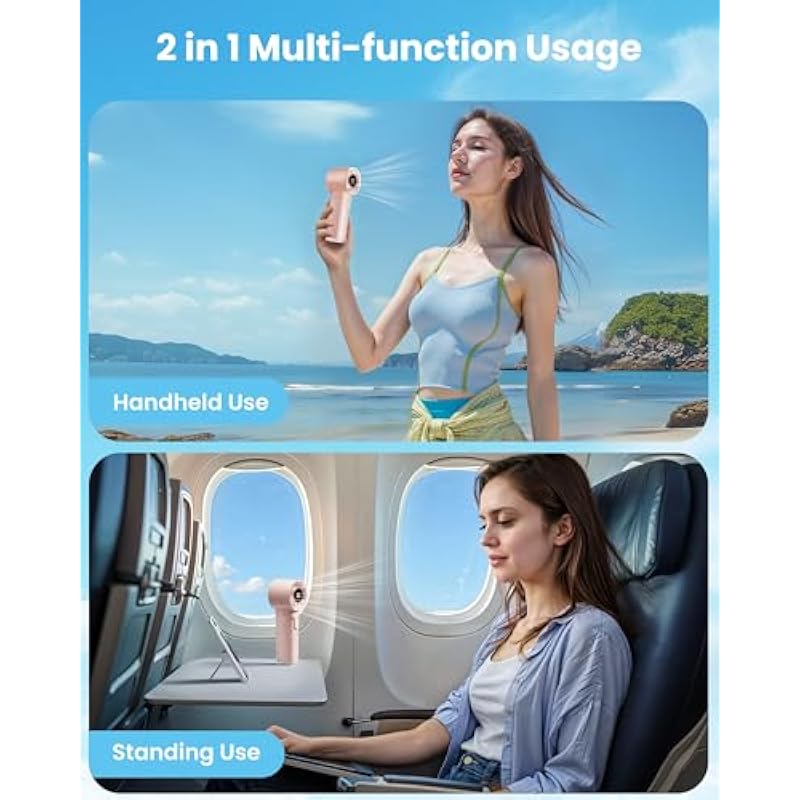 - Handheld and Desk Use: This cooling hand fan with stylish appearance and comfortable grip, anti-lost lanyard for outdoor use, a travel essentials; the bottom has a non-slip silicone pad, stand firmly, a mini desk fan for indoor use or make up