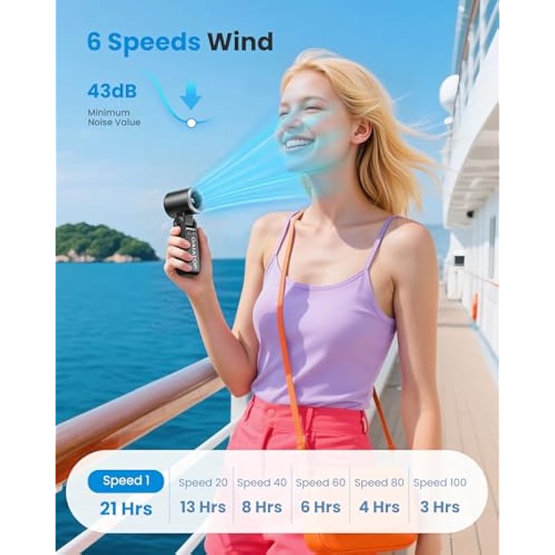 | Special Feature | Turbo Boost Cooling Fan, 21h Max Cooling Time, 6-Speeds (1-100), 180° Ultimate Flexibility, 4 in 1 Handheld Fan |