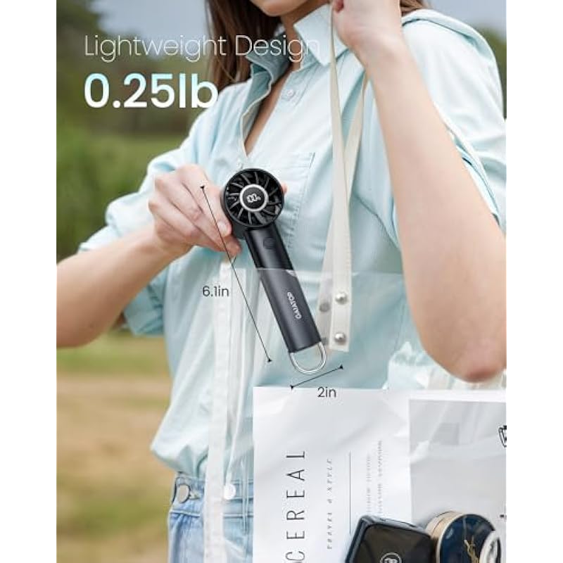 - Portable Size: This cute small fan is only 2*2*6 inches, 118g/0.25 lbs. You can put the personal fan in your pocket or bag, or use the metal buckle to hang it on your backpack; It’s the perfect summer companion no matter where you go