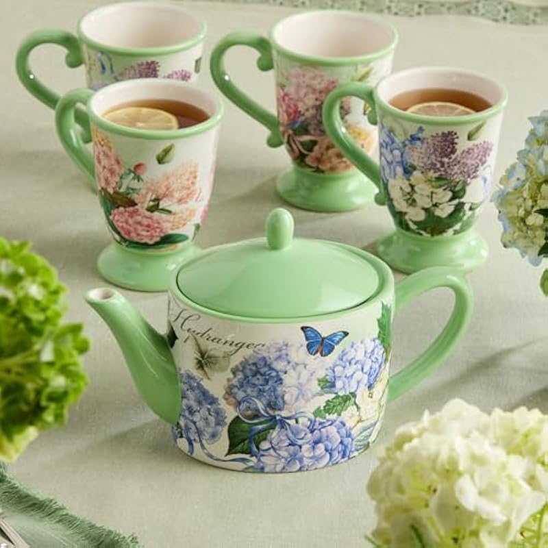- Durable Ceramic Craftsmanship: Made from premium ceramic, this teapot is heat-retentive and resistant to everyday wear, ensuring its vibrant hydrangea and butterfly design stays beautiful over time