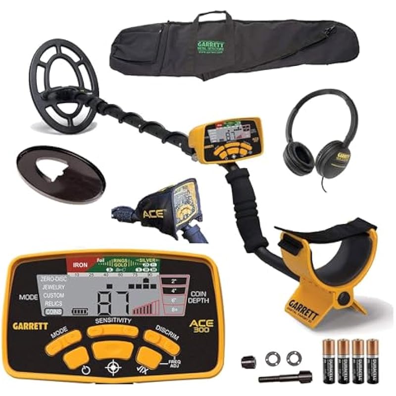 Garrett ACE 300 Metal Detector Bundle – Made in The USA – Digital Target ID, Iron Resolution, Adjustable Frequency, Includes Carry Bag, Headphones & Searchcoil Cover