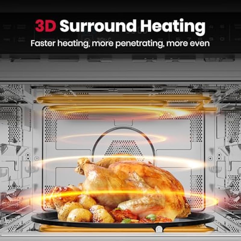 - 【3D Convection Heating】The upgraded powerful convection system spreads heated air evenly throughout the interior of the microwave oven for fast heating, even cooking, elimination of cold spots, and the ability to reduce cooking time for you.