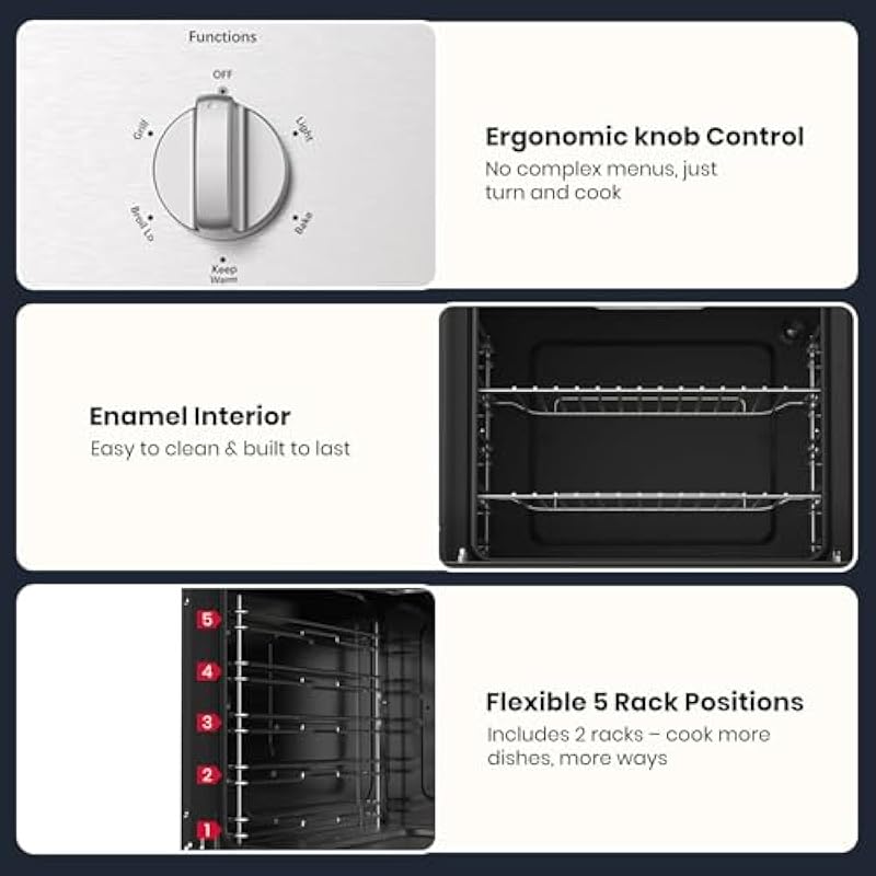 - 【Easy to Clean, Built to Last】The smooth enamel-coated interior resists grease and stains, while the removable door design makes deep cleaning quick and convenient. Designed for durability and ease of maintenance, this electric wall oven is a smart choice for busy kitchens.